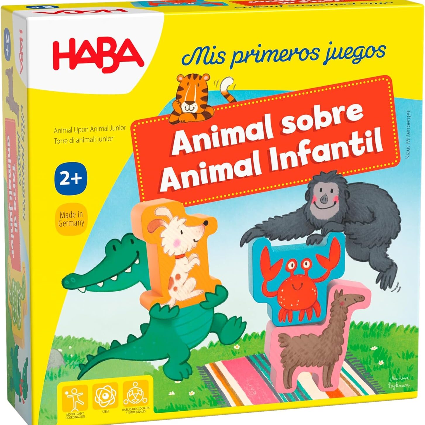 En Mis Primeros Juegos – Animal sobre Animal, los jugadores se convierten en pequeños equilibristas que deben ir colocando animales de madera uno encima de otro, construyendo una torre cada vez más inestable.