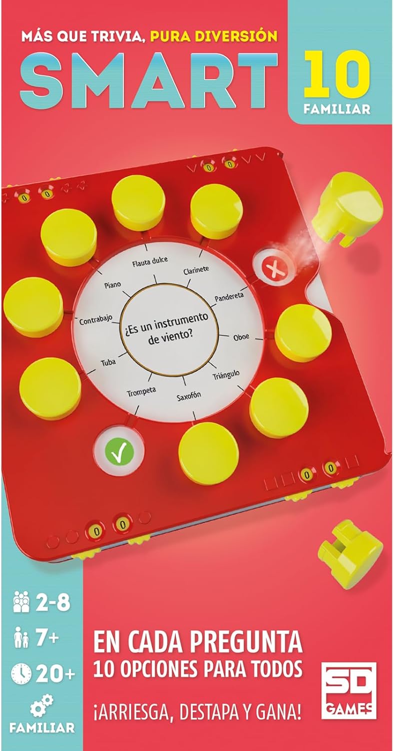 La versión Smart 10 Familiar incluye preguntas pensadas para jugar con diferentes edades, y todo el juego está integrado en una pequeña caja, lo que facilita llevarlo de viaje.